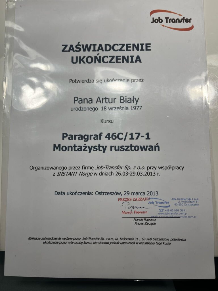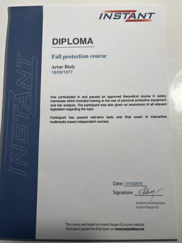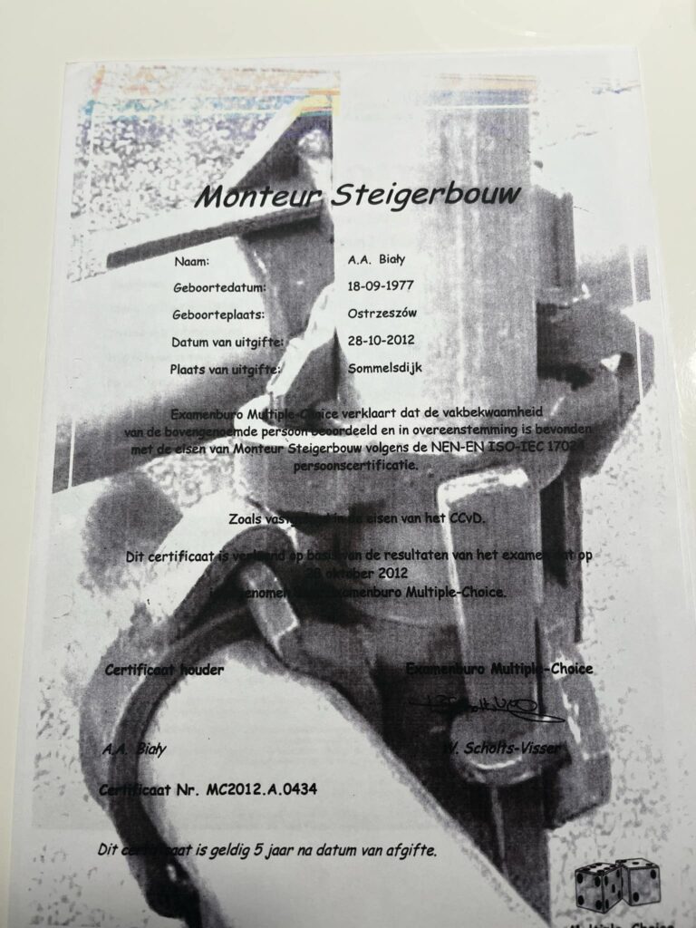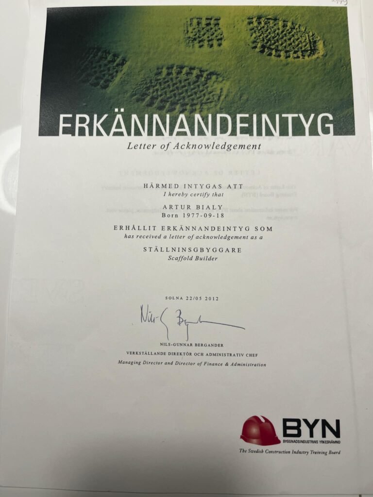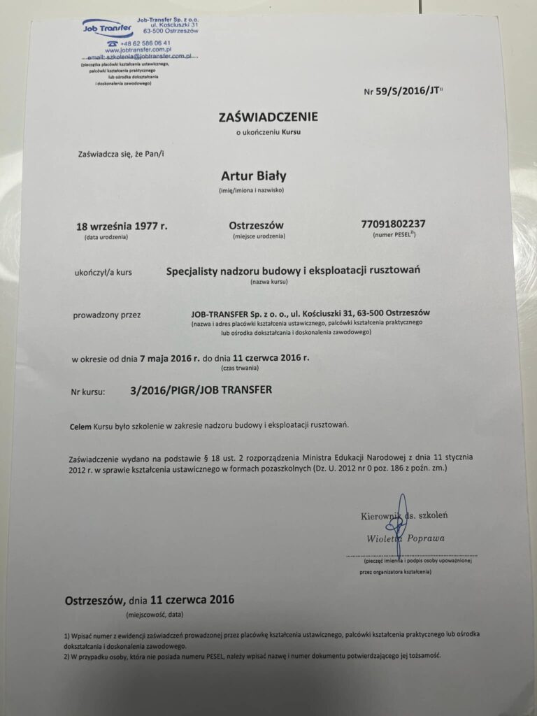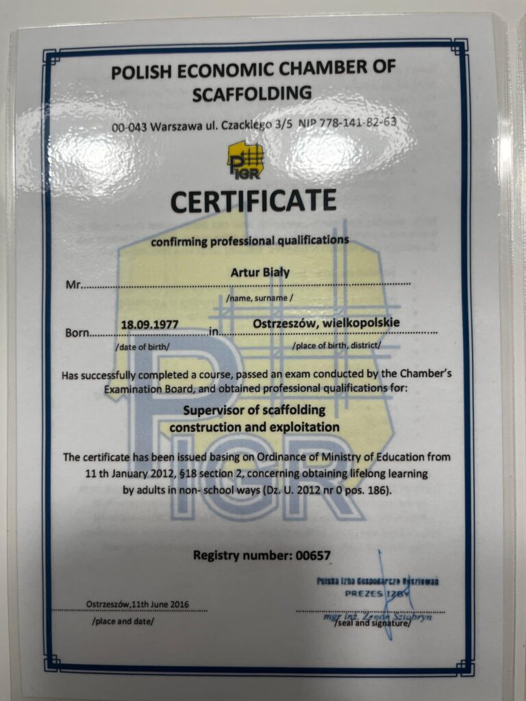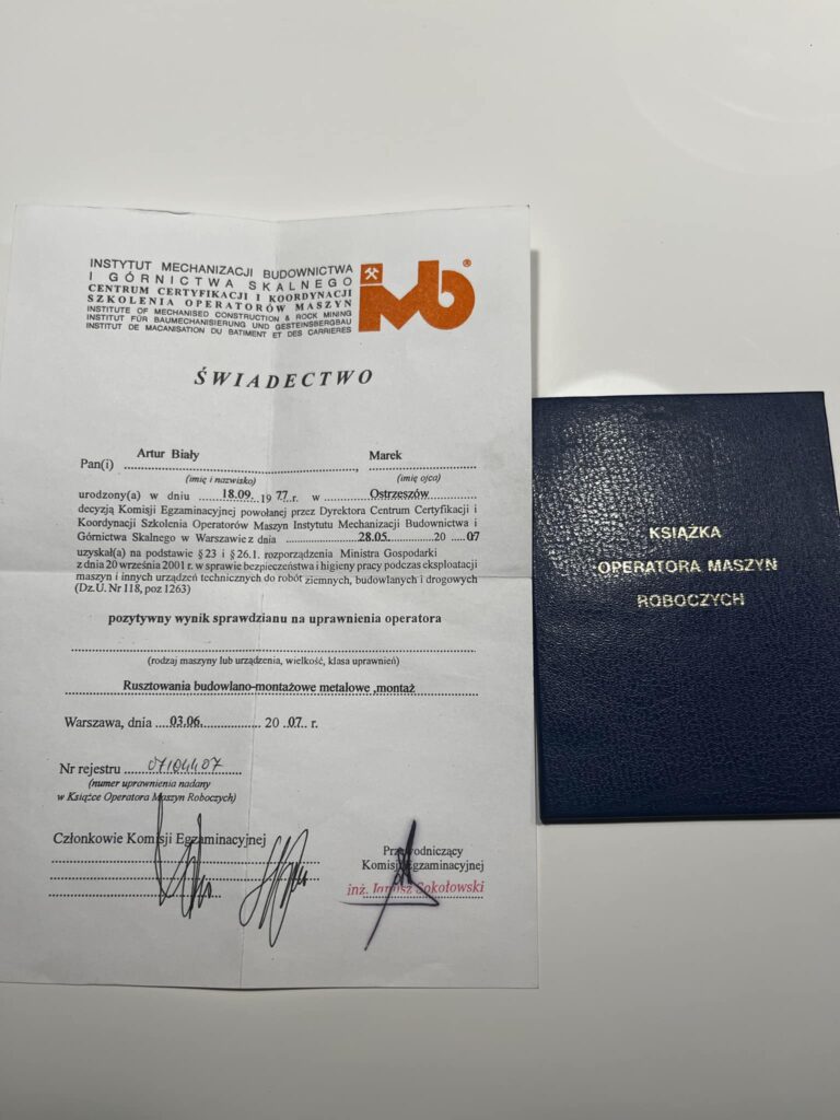 I present my documents, certificates, diplomas, cards, permits for various construction works, equipment, etc.